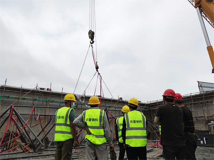 6.为确保.阳江加油站球形网架安装顺利,应有详细的阳江施工组织设计。网架安装必须保证结构的稳定性和不产生的附加变形。